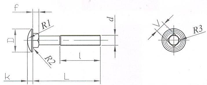 Thông số kỹ thuật Bu lông cổ vuông đầu tròn: