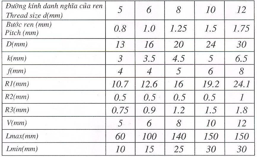 – Cấp bền: 3.6, 4.6, 5.6, 6.8, 8.8.